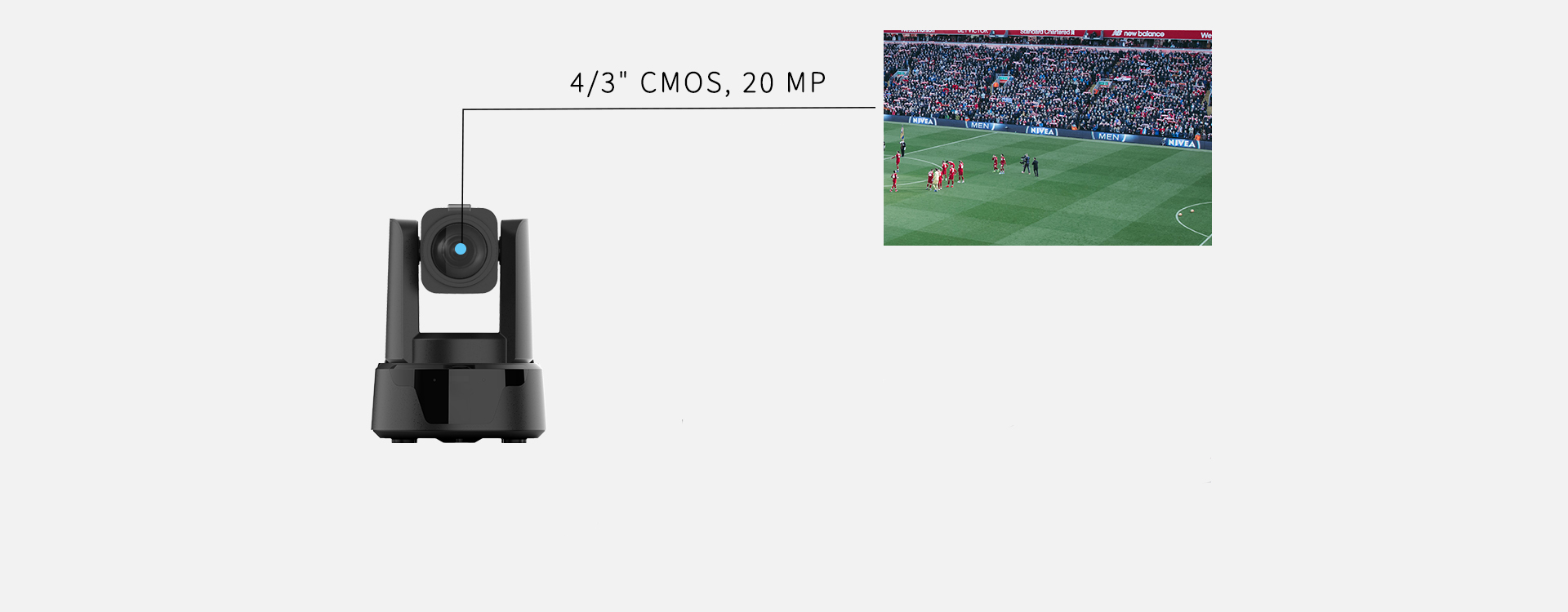 Broadcast-grade UHD ImagingFitted a 4/3″ CMOS sensor, 20 MP lens supports high quality broadcast-grade dual-camera output up to 4K P60/P59.94.